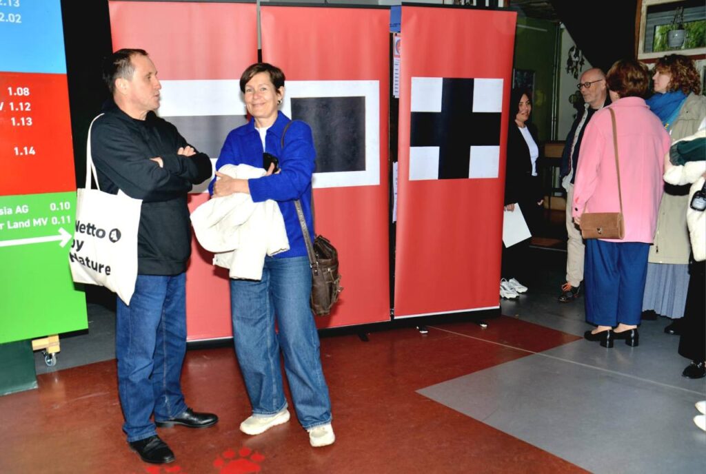 Подію в кінотеатрі Li.Wu. (Frieda23) організував Німецько-український центр у м. Росток. Завдяки співпраці з командою фільму показ супроводжувала виставка сценічних костюмів, натхненних творами Малевича, а також репродукцій його супрематичних робіт, вперше представлених на знаковій останній футуристичній виставці картин «0,10» у Петрограді 1915–1916 років.