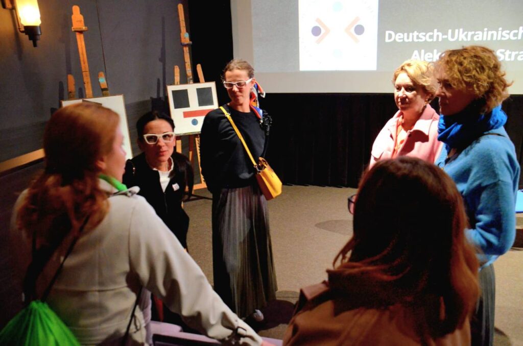 Після показу відбулася розмова з продюсеркою фільму Марією Каель та німецькою мистецтвознавицею др. Мертенз. Глядачі дізналися про неймовірно складні обставини зйомок стрічки у розпал бойових дій на Київщині в 2022 році та про те, як повномасштабна війна докорінно змінила первісну ідею і сценарій фільму. Говорили і про промоцію, і про художні рішення, і про головні меседжі стрічки.